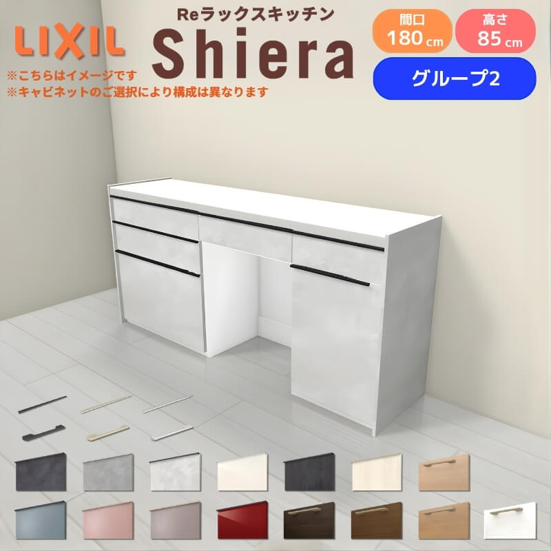 26年新モデル カップボード シエラ 間口180cm(75+60+45cm) フロアキャビネット 壁付け型 カウンター高さ85cm 奥行45cm W1800mm グループ2 LIXIL リクシル 食器棚 ロータイプ キッチン収納 キッチンボード セミオーダー 仕様変更 施主支給 リフォーム DIY