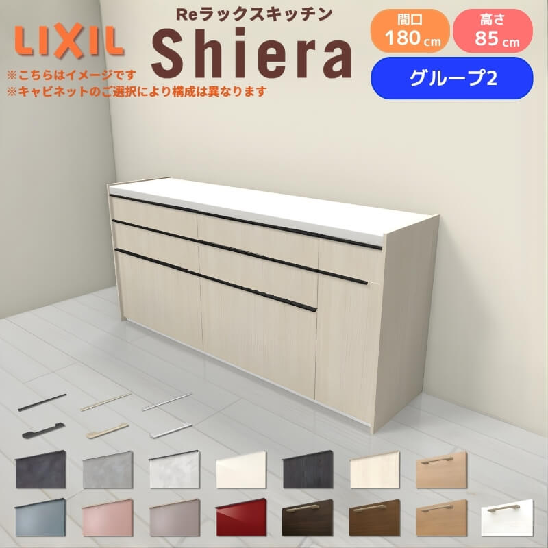 26年新モデル カップボード シエラ 間口180cm(75+75+30cm) フロアキャビネット 壁付け型 カウンター高さ85cm 奥行45cm W1800mm グループ2 LIXIL リクシル 食器棚 ロータイプ キッチン収納 キッチンボード セミオーダー 仕様変更 施主支給 リフォーム DIY
