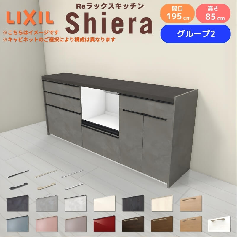 26年新モデル カップボード シエラ 間口195cm(75+60+60cm) フロアキャビネット 壁付け型 カウンター高さ85cm 奥行45cm W1950mm グループ2 LIXIL リクシル 食器棚 ロータイプ キッチン収納 キッチンボード セミオーダー 仕様変更 施主支給 リフォーム DIY