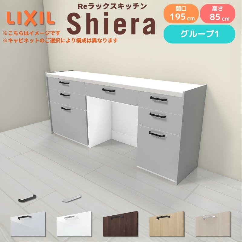 26年新モデル カップボード シエラ 間口195cm(75+75+45cm) フロアキャビネット 壁付け型 カウンター高さ85cm 奥行45cm W1950mm グループ1 LIXIL リクシル 食器棚 ロータイプ キッチン収納 キッチンボード セミオーダー 仕様変更 施主支給 リフォーム DIY