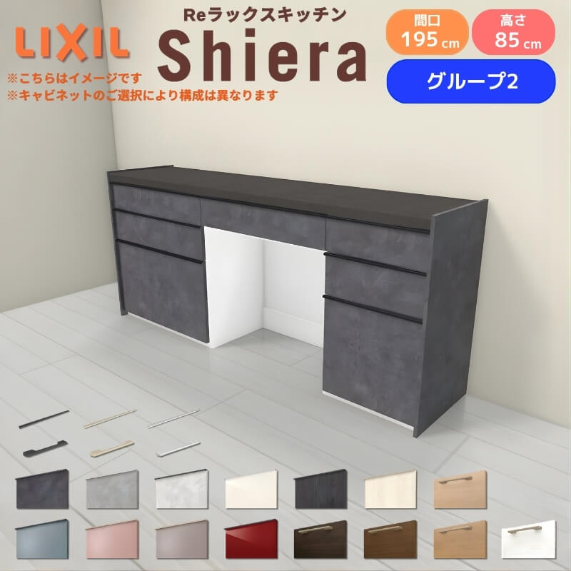 26年新モデル カップボード シエラ 間口195cm(75+75+45cm) フロアキャビネット 壁付け型 カウンター高さ85cm 奥行45cm W1950mm グループ2 LIXIL リクシル 食器棚 ロータイプ キッチン収納 キッチンボード セミオーダー 仕様変更 施主支給 リフォーム DIY