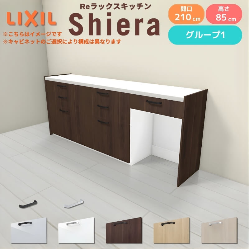 26年新モデル カップボード シエラ 間口210cm(75+75+60cm) フロアキャビネット 壁付け型 カウンター高さ85cm 奥行45cm W2100mm グループ1 LIXIL リクシル 食器棚 ロータイプ キッチン収納 キッチンボード セミオーダー 仕様変更 施主支給 リフォーム DIY