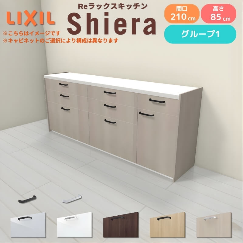 26年新モデル カップボード シエラ 間口210cm(90+75+45cm) フロアキャビネット 壁付け型 カウンター高さ85cm 奥行45cm W2100mm グループ1 LIXIL リクシル 食器棚 ロータイプ キッチン収納 キッチンボード セミオーダー 仕様変更 施主支給 リフォーム DIY