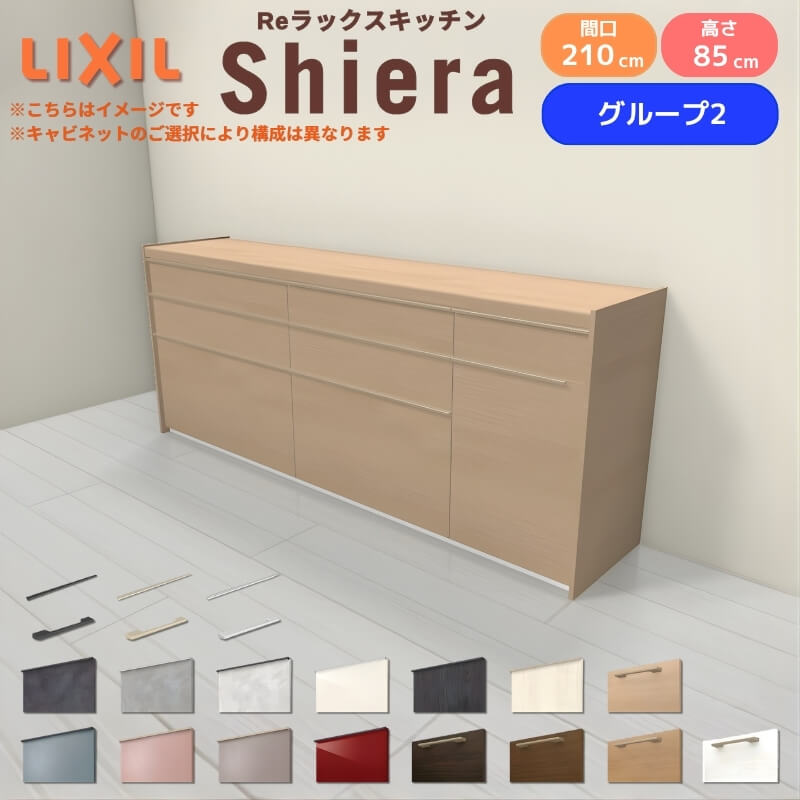 26年新モデル カップボード シエラ 間口210cm(90+75+45cm) フロアキャビネット 壁付け型 カウンター高さ85cm 奥行45cm W2100mm グループ2 LIXIL リクシル 食器棚 ロータイプ キッチン収納 キッチンボード セミオーダー 仕様変更 施主支給 リフォーム DIY