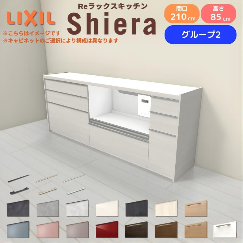 26年新モデル カップボード シエラ 間口210cm(90+90+30cm) フロアキャビネット 壁付け型 カウンター高さ85cm 奥行45cm W2100mm グループ2 LIXIL リクシル 食器棚 ロータイプ キッチン収納 キッチンボード セミオーダー 仕様変更 施主支給 リフォーム DIY