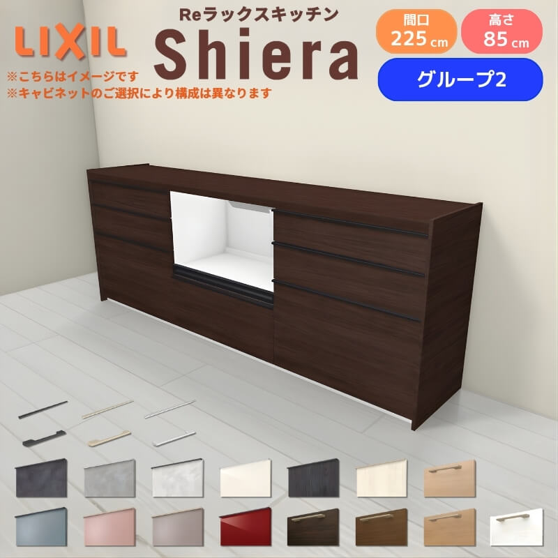 26年新モデル カップボード シエラ 間口225cm(75+75+75cm) フロアキャビネット 壁付け型 カウンター高さ85cm 奥行45cm W2250mm グループ2 LIXIL リクシル 食器棚 ロータイプ キッチン収納 キッチンボード セミオーダー 仕様変更 施主支給 リフォーム DIY