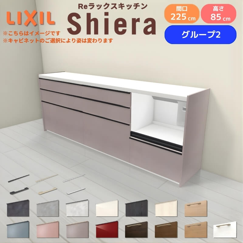 26年新モデル カップボード シエラ 間口225cm(90+75+60cm) フロアキャビネット 壁付け型 カウンター高さ85cm 奥行45cm W2250mm グループ2 LIXIL リクシル 食器棚 ロータイプ キッチン収納 キッチンボード セミオーダー 仕様変更 施主支給 リフォーム DIY