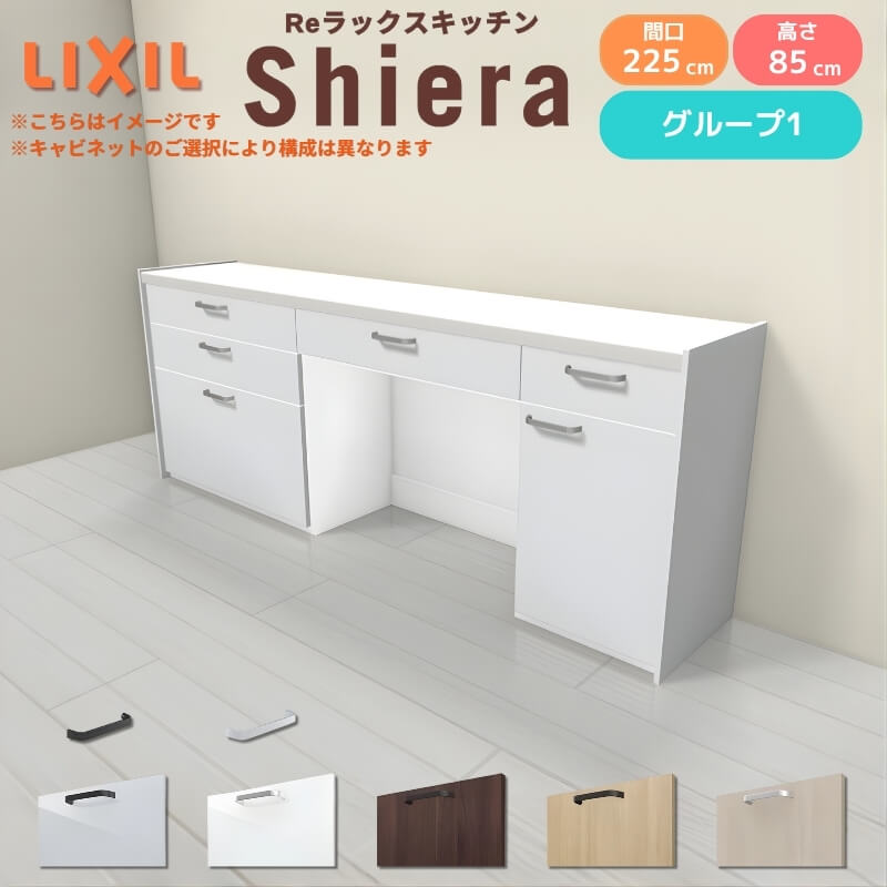 26年新モデル カップボード シエラ 間口225cm(90+90+45cm) フロアキャビネット 壁付け型 カウンター高さ85cm 奥行45cm W2250mm グループ1 LIXIL リクシル 食器棚 ロータイプ キッチン収納 キッチンボード セミオーダー 仕様変更 施主支給 リフォーム DIY