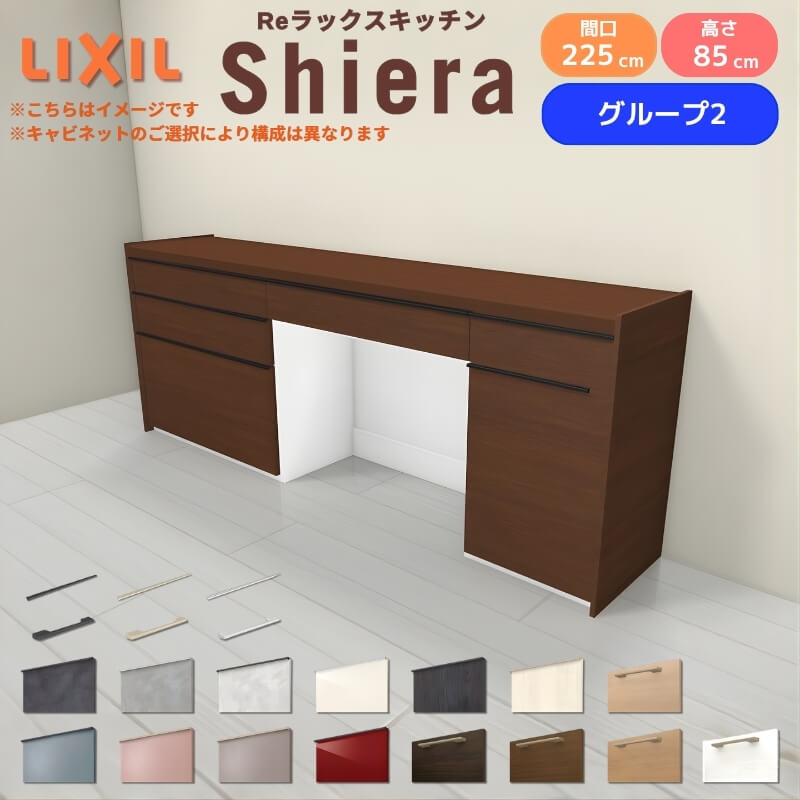 26年新モデル カップボード シエラ 間口225cm(90+90+45cm) フロアキャビネット 壁付け型 カウンター高さ85cm 奥行45cm W2250mm グループ2 LIXIL リクシル 食器棚 ロータイプ キッチン収納 キッチンボード セミオーダー 仕様変更 施主支給 リフォーム DIY