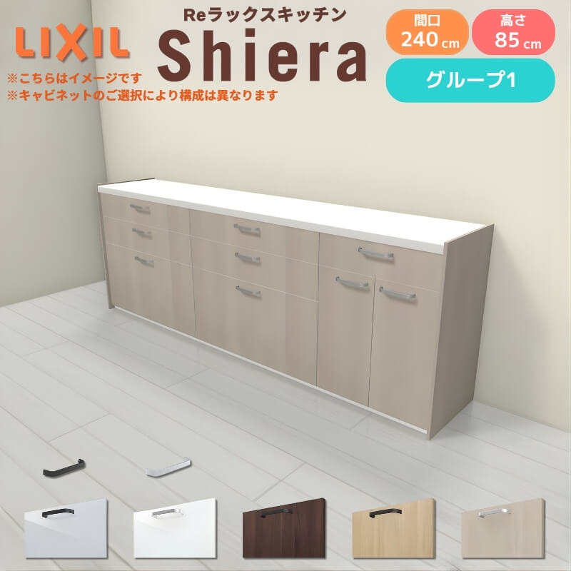 26年新モデル カップボード シエラ 間口240cm(90+90+60cm) フロアキャビネット 壁付け型 カウンター高さ85cm 奥行45cm W2400mm グループ1 LIXIL リクシル 食器棚 ロータイプ キッチン収納 キッチンボード セミオーダー 仕様変更 施主支給 リフォーム DIY