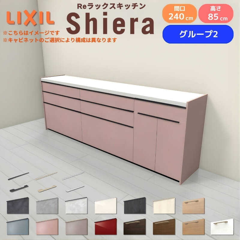 26年新モデル カップボード シエラ 間口240cm(90+90+60cm) フロアキャビネット 壁付け型 カウンター高さ85cm 奥行45cm W2400mm グループ2 LIXIL リクシル 食器棚 ロータイプ キッチン収納 キッチンボード セミオーダー 仕様変更 施主支給 リフォーム DIY