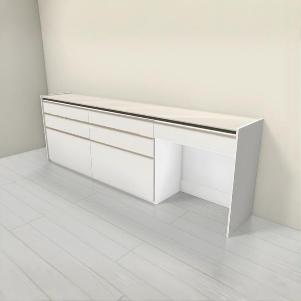 収納カウンターもスリムデザインで統一できるので、空間をエレガントにモダンに美しくまとまります。