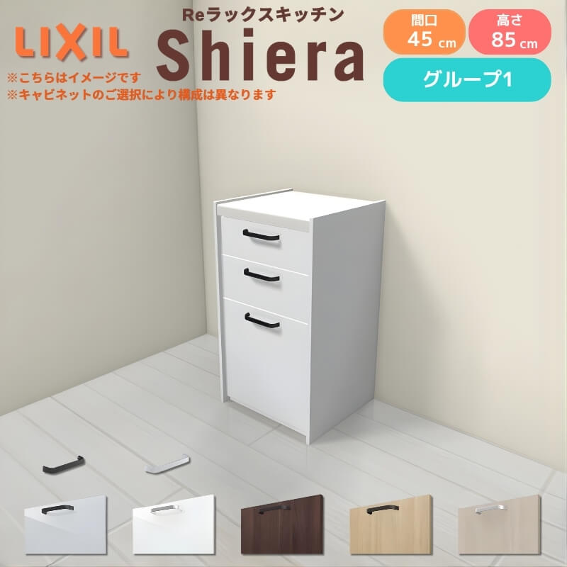 26年新モデル カップボード シエラ 間口45cm(R/L) フロアキャビネット 壁付け型 カウンター高さ85cm 奥行45cm W450mm グループ1 LIXIL リクシル 食器棚 ロータイプ 一人暮らし キッチン収納 キッチンボード セミオーダー 施主支給 リフォーム DIY