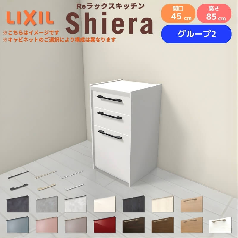 26年新モデル カップボード シエラ 間口45cm(R/L) フロアキャビネット 壁付け型 カウンター高さ85cm 奥行45cm W450mm グループ2 LIXIL リクシル 食器棚 ロータイプ 一人暮らし キッチン収納 キッチンボード セミオーダー 施主支給 リフォーム DIY