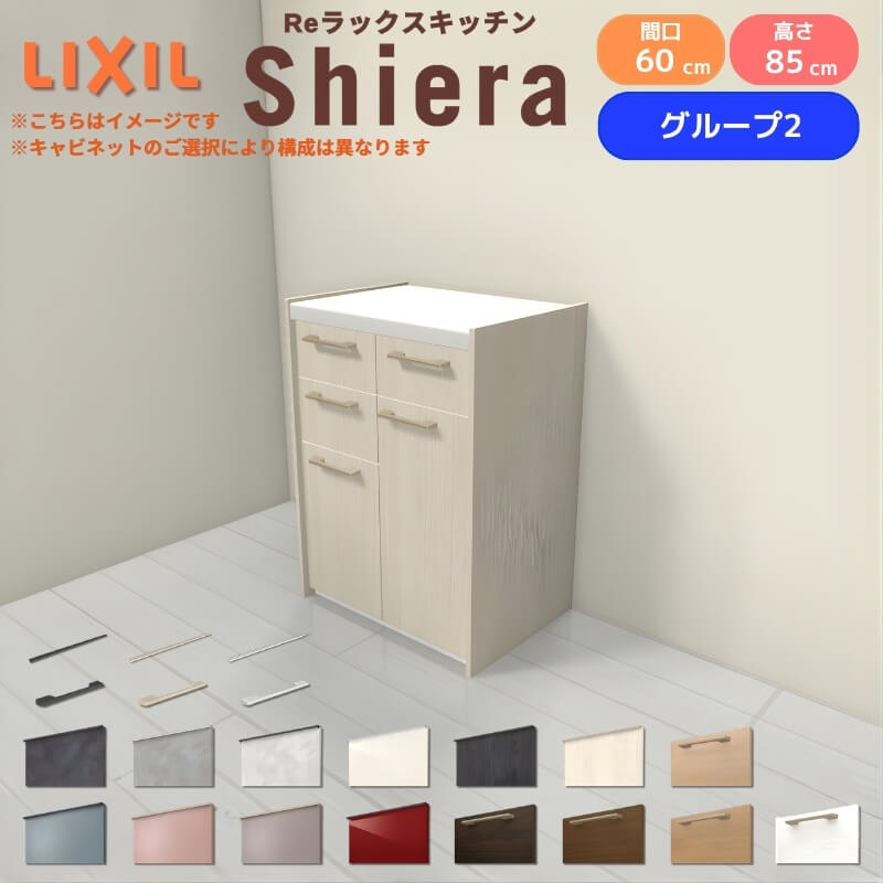 26年新モデル カップボード シエラ 間口60cm(30+30cm) フロアキャビネット 壁付け型 カウンター高さ85cm 奥行45cm W600mm グループ2 LIXIL リクシル 食器棚 ロータイプ 一人暮らし キッチン収納 キッチンボード セミオーダー 施主支給 リフォーム DIY