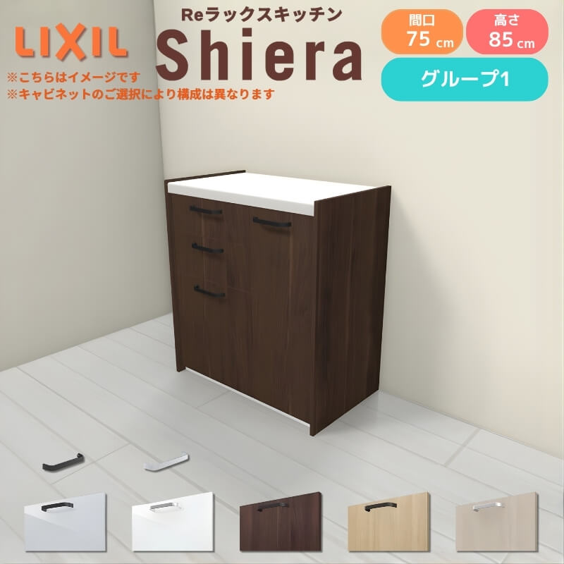 26年新モデル カップボード シエラ 間口75cm(45+30cm) フロアキャビネット 壁付け型 カウンター高さ85cm 奥行45cm W750mm グループ1 LIXIL リクシル 食器棚 ロータイプ 一人暮らし キッチン収納 キッチンボード セミオーダー 施主支給 リフォーム DIY