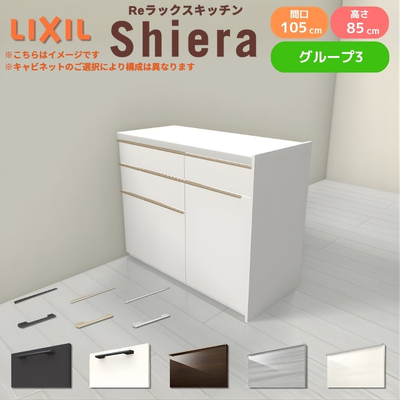 26年新モデル カップボード シエラ 間口105cm(60+45cm) フロアキャビネット 間仕切り型 カウンター高さ85cm 奥行45cm W1050mm グループ3 LIXIL リクシル 食器棚 ロータイプ キッチン収納 キッチンボード セミオーダー 仕様変更 施主支給 リフォーム DIY