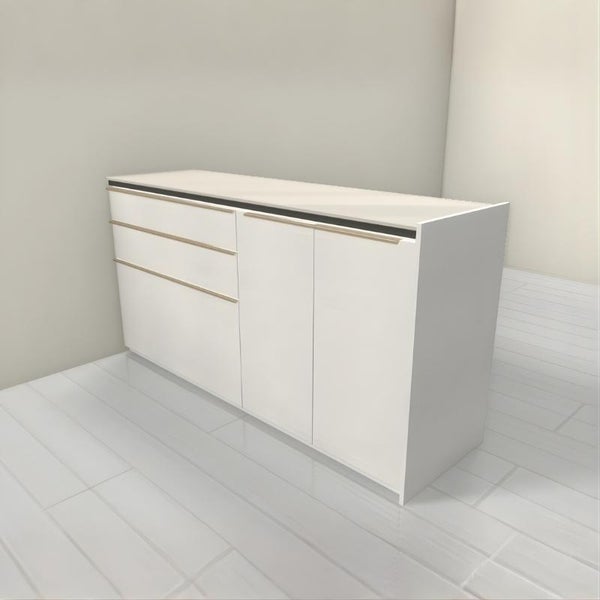 収納カウンターもスリムデザインで統一できるので、空間をエレガントにモダンに美しくまとまります。