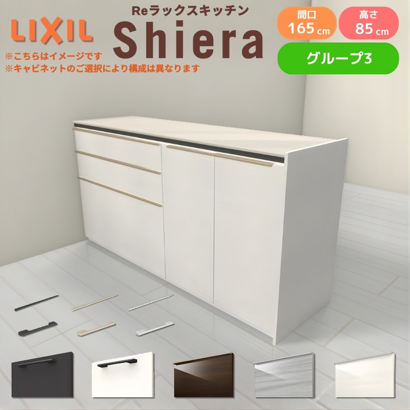 26年新モデル カップボード シエラ 間口165cm(90+75cm) フロアキャビネット 間仕切り型 カウンター高さ85cm 奥行45cm W1650mm グループ3 LIXIL リクシル 食器棚 ロータイプ キッチン収納 キッチンボード セミオーダー 仕様変更 施主支給 リフォーム DIY