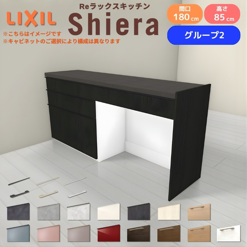 26年新モデル カップボード シエラ 間口180cm(90+90cm) フロアキャビネット 間仕切り型 カウンター高さ85cm 奥行45cm W1800mm グループ2 LIXIL リクシル 食器棚 ロータイプ キッチン収納 キッチンボード セミオーダー 仕様変更 施主支給 リフォーム DIY
