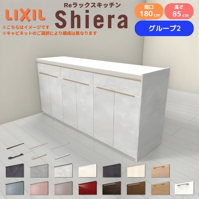 26年新モデル カップボード シエラ 間口180cm(60+60+60cm) フロアキャビネット 間仕切り型 カウンター高さ85cm 奥行45cm W1800mm グループ2 LIXIL リクシル 食器棚 ロータイプ キッチン収納 キッチンボード セミオーダー 施主支給 リフォーム DIY