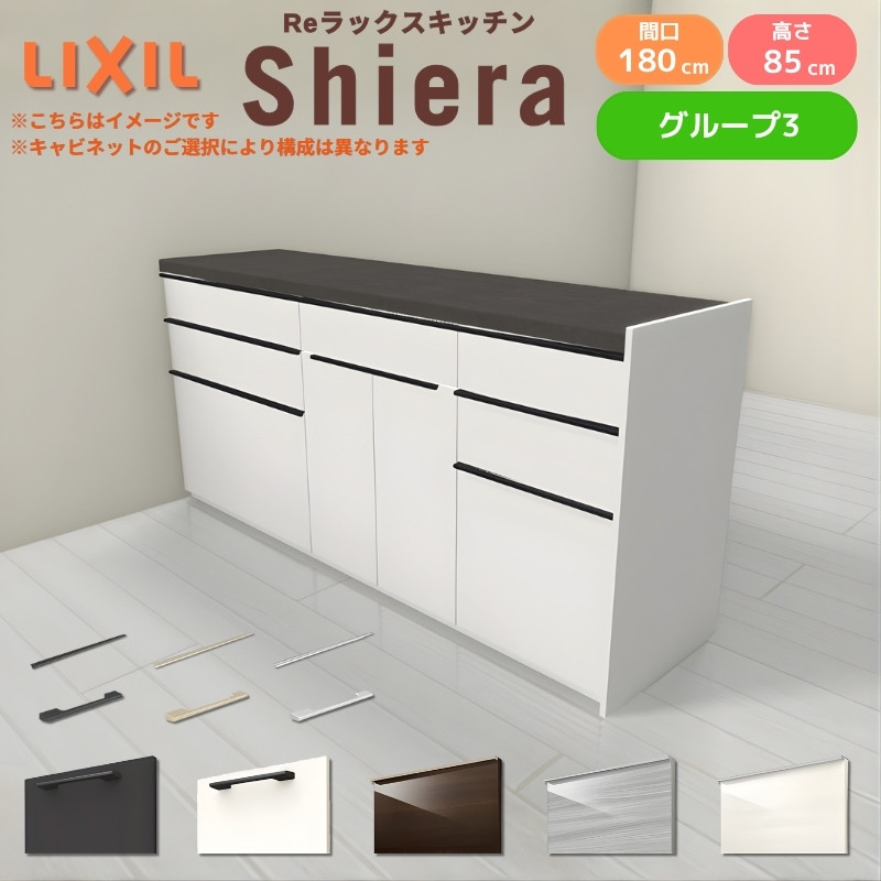26年新モデル カップボード シエラ 間口180cm(75+60+45cm) フロアキャビネット 間仕切り型 カウンター高さ85cm 奥行45cm W1800mm グループ3 LIXIL リクシル 食器棚 ロータイプ キッチン収納 キッチンボード セミオーダー 施主支給 リフォーム DIY