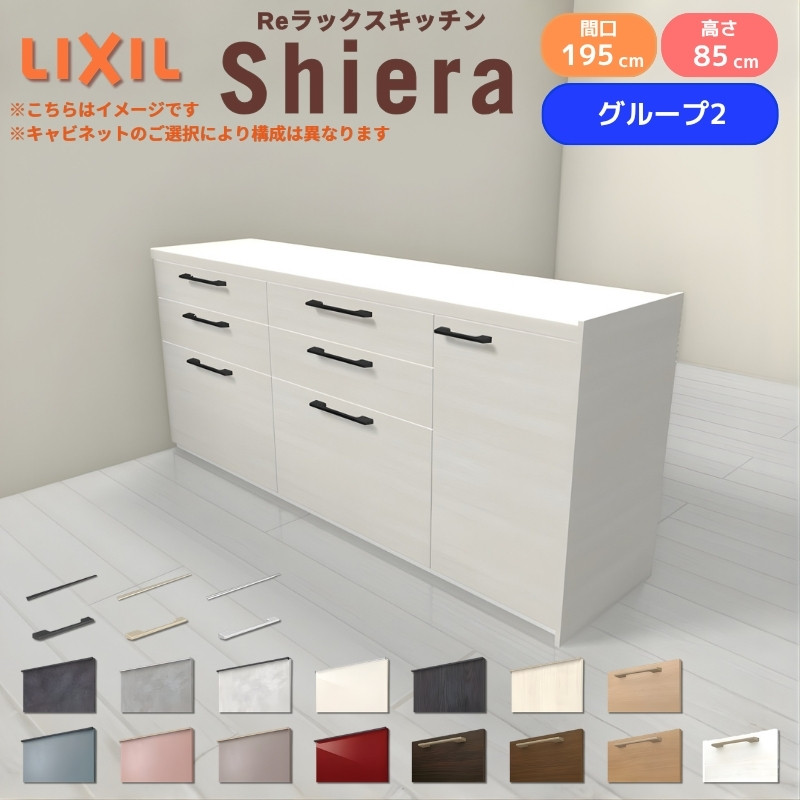 26年新モデル カップボード シエラ 間口195cm(75+75+45cm) フロアキャビネット 間仕切り型 カウンター高さ85cm 奥行45cm W1950mm グループ2 LIXIL リクシル 食器棚 ロータイプ キッチン収納 キッチンボード セミオーダー 施主支給 リフォーム DIY
