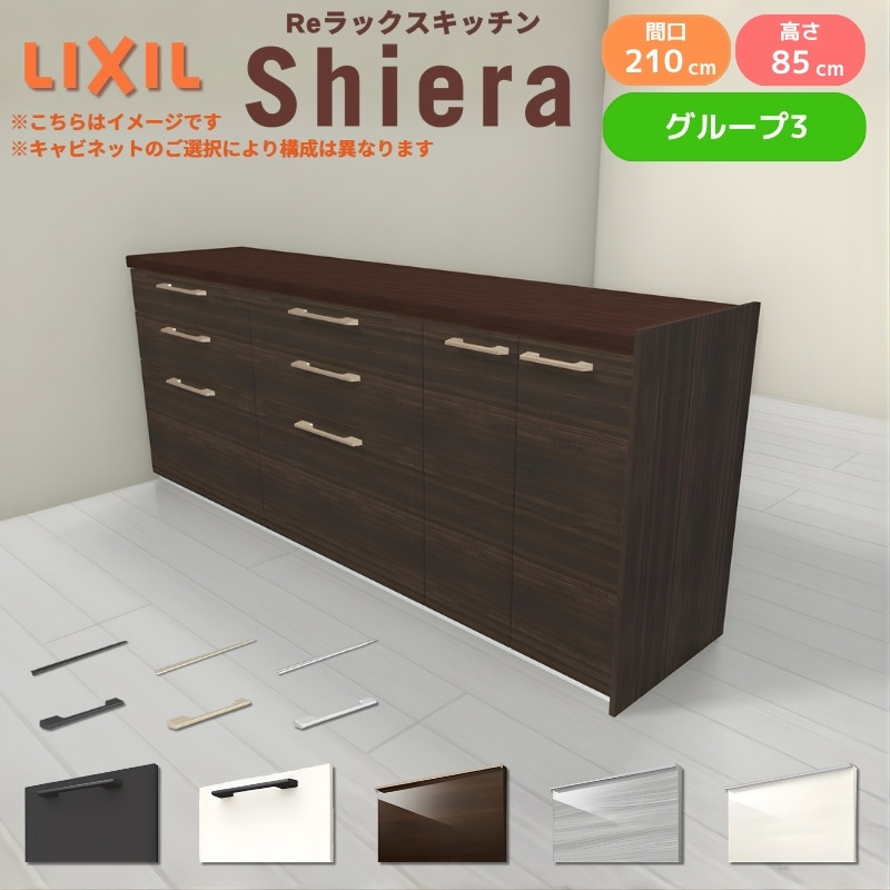 26年新モデル カップボード シエラ 間口210cm(75+75+60cm) フロアキャビネット 間仕切り型 カウンター高さ85cm 奥行45cm W2100mm グループ3 LIXIL リクシル 食器棚 ロータイプ キッチン収納 キッチンボード セミオーダー 施主支給 リフォーム DIY
