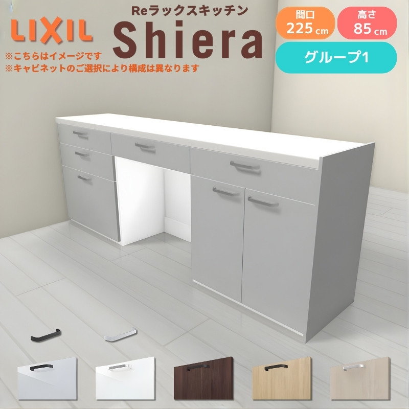 26年新モデル カップボード シエラ 間口225cm(75+75+75cm) フロアキャビネット 間仕切り型 カウンター高さ85cm 奥行45cm W2250mm グループ1 LIXIL リクシル 食器棚 ロータイプ キッチン収納 キッチンボード セミオーダー 施主支給 リフォーム DIY