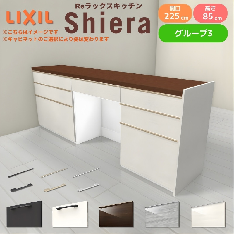 26年新モデル カップボード シエラ 間口225cm(90+75+60cm) フロアキャビネット 間仕切り型 カウンター高さ85cm 奥行45cm W2250mm グループ3 LIXIL リクシル 食器棚 ロータイプ キッチン収納 キッチンボード セミオーダー 施主支給 リフォーム DIY