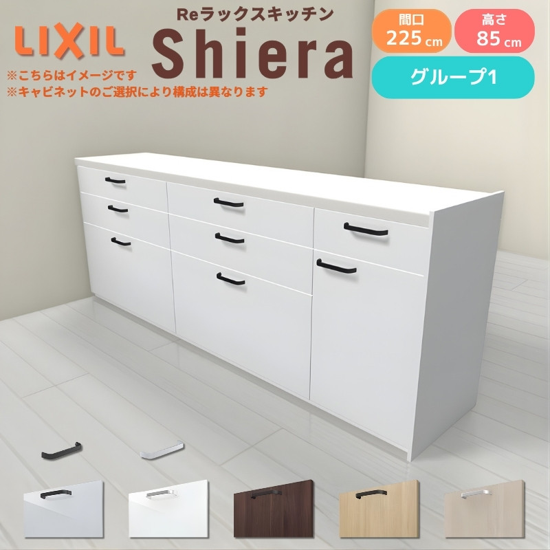 26年新モデル カップボード シエラ 間口225cm(90+90+45cm) フロアキャビネット 間仕切り型 カウンター高さ85cm 奥行45cm W2250mm グループ1 LIXIL リクシル 食器棚 ロータイプ キッチン収納 キッチンボード セミオーダー 施主支給 リフォーム DIY