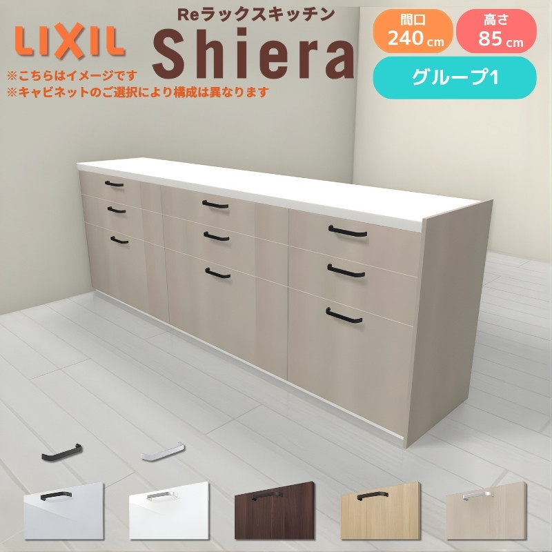 26年新モデル カップボード シエラ 間口240cm(90+90+60cm) フロアキャビネット 間仕切り型 カウンター高さ85cm 奥行45cm W2400mm グループ1 LIXIL リクシル 食器棚 ロータイプ キッチン収納 キッチンボード セミオーダー 施主支給 リフォーム DIY
