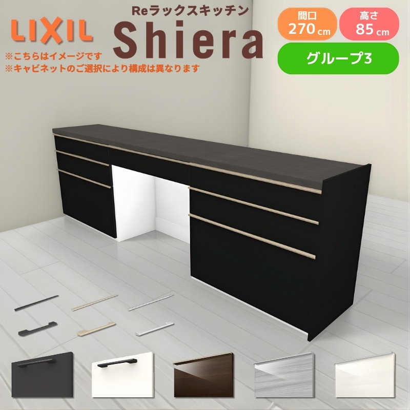 26年新モデル カップボード シエラ 間口270cm(90+90+90cm) フロアキャビネット 間仕切り型 カウンター高さ85cm 奥行45cm W2700mm グループ3 LIXIL リクシル 食器棚 ロータイプ キッチン収納 キッチンボード セミオーダー 施主支給 リフォーム DIY