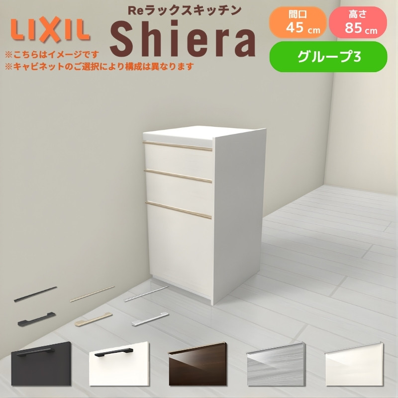 26年新モデル カップボード シエラ 間口45cm(R/L) フロアキャビネット 間仕切り型 カウンター高さ85cm 奥行45cm W450mm グループ3 LIXIL リクシル 食器棚 ロータイプ 一人暮らし キッチン収納 キッチンボード セミオーダー 施主支給 リフォーム DIY
