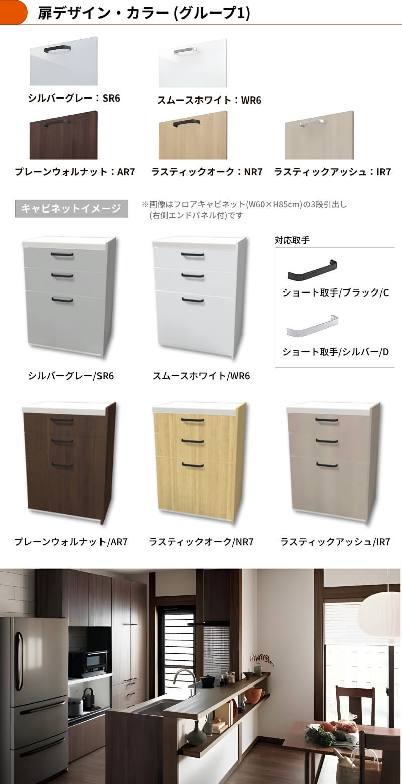 収納ユニットはシエラと同色扉をご用意。同色の木目柄で統一すれば、家具のような空間演出が可能です。