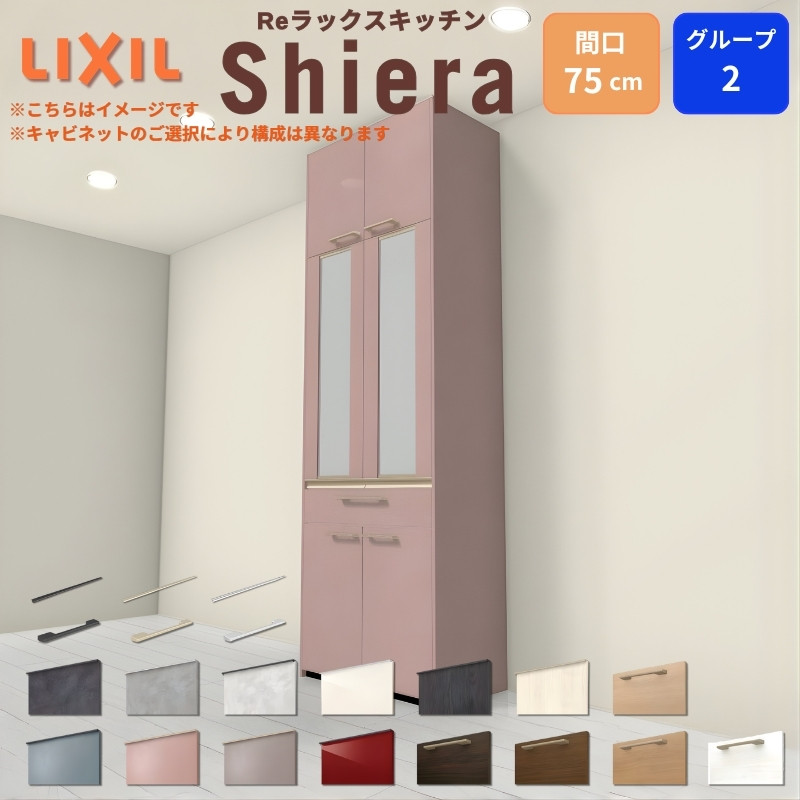 26年新モデル カップボード シエラ 間口75cm 高さ165/185/215/235/255cm 奥行45cm W750mm グループ2 LIXIL リクシル 食器棚 トールタイプ スリム 一人暮らし キッチン収納 キッチンボード セミオーダー 仕様変更 施主支給 リフォーム DIY