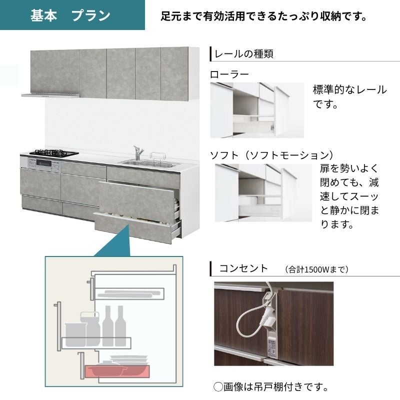 システムキッチン 流し台 本体 LIXIL 安い リフォーム おしゃれ システムキッチン シエラ W2724mm 構造壁対応型基本プラン 食洗機付き 間口272.4cm 奥行97/75cm グループ3 リクシル 流し台