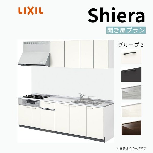 システムキッチン シエラ W2550mm 壁付I型 開き扉プラン ウォールユニット付 食洗機付き 間口255cm 奥行65cm グループ3 リクシル 流し台