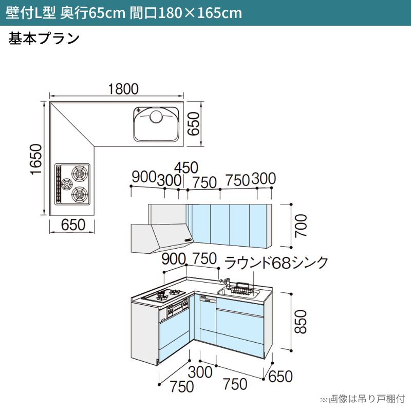 システムキッチン シエラ W1800mm 壁付L型 基本プラン ウォールユニット無 食洗機付き 間口180×165cm 奥行65cm グループ2 リクシル 流し台