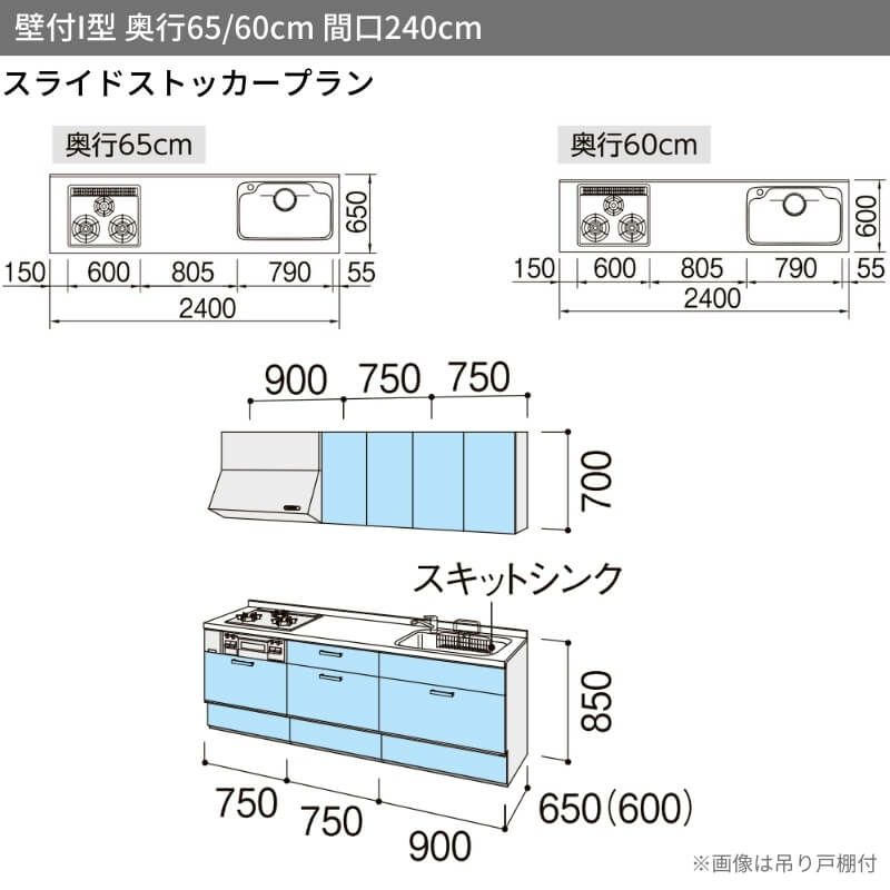 システムキッチン 流し台 本体 LIXIL 安い リフォーム おしゃれ システムキッチン リクシル シエラS 壁付I型 スライドストッカープラン ウォールユニット付 食器洗い乾燥機なし W2400mm 間口240cm 奥行65cm グループ2 流し台 おしゃれ 可愛い システムキッチン セミオーダー リフォーム DIY