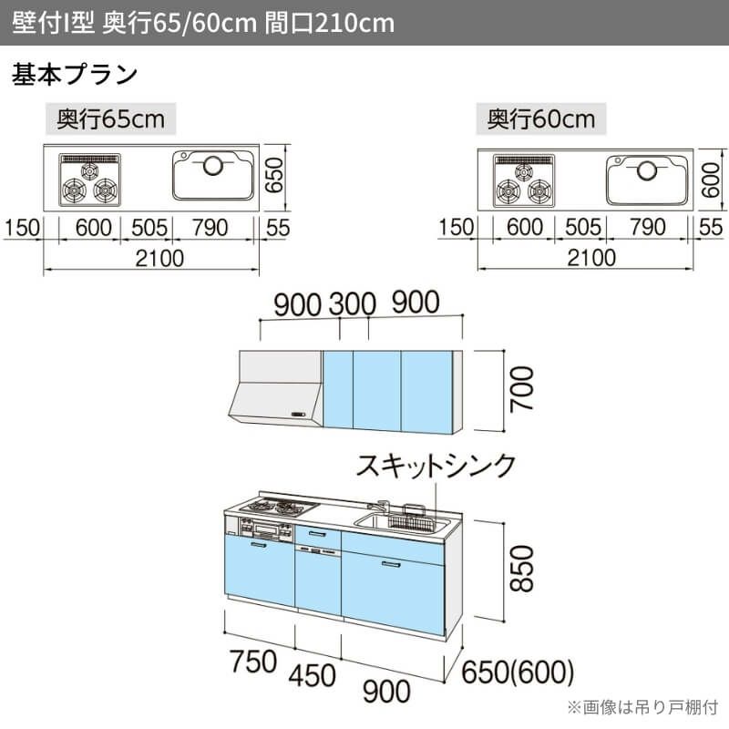 システムキッチン 流し台 本体 LIXIL 安い リフォーム おしゃれ システムキッチン リクシル シエラS 壁付I型 基本プラン ウォールユニット付 食器洗い乾燥機付 W2100mm 間口210cm 奥行65cm グループ1 流し台 おしゃれ 可愛い システムキッチン セミオーダー リフォーム DIY