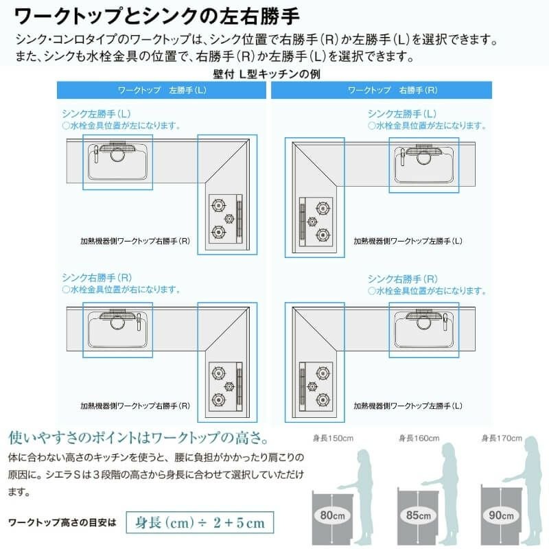 システムキッチン 流し台 本体 LIXIL 安い リフォーム おしゃれ システムキッチン リクシル シエラS 壁付L型 基本プラン ウォールユニットなし 食器洗い乾燥機なし 間口195×165/180cm 奥行65cm グループ2 流し台 おしゃれ 可愛い システムキッチン セミオーダー リフォーム DIY