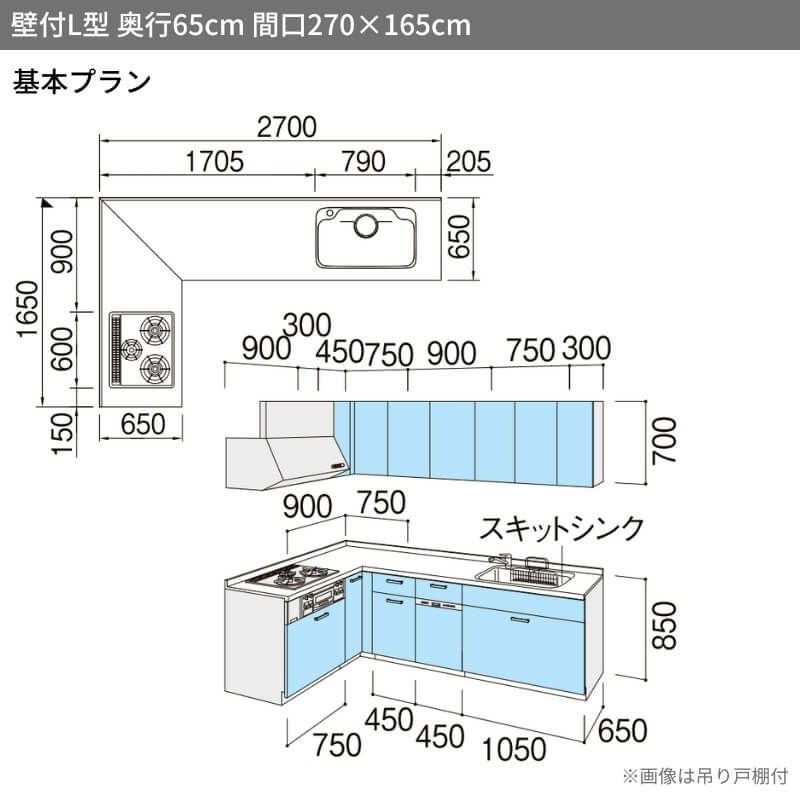 システムキッチン 流し台 本体 LIXIL 安い リフォーム おしゃれ システムキッチン リクシル シエラS 壁付L型 基本プラン ウォールユニットなし 食器洗い乾燥機なし 間口270×165/180cm 奥行65cm グループ2 流し台 おしゃれ 可愛い システムキッチン セミオーダー リフォーム DIY