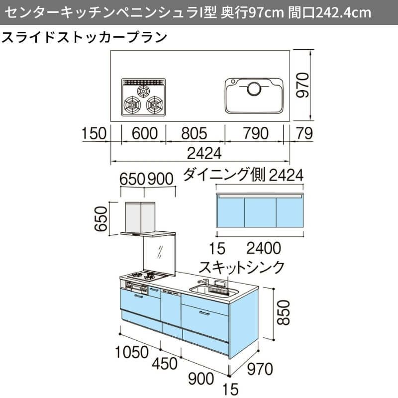 システムキッチン 流し台 本体 LIXIL 安い リフォーム おしゃれ システムキッチン リクシル シエラS センターキッチン ペニンシュラI型 スライドストッカープラン 食器洗い乾燥機付 W2424mm 間口242.4cm 奥行75/97cm グループ1 流し台 おしゃれ 可愛い システムキッチン セミオーダー リフォーム DIY