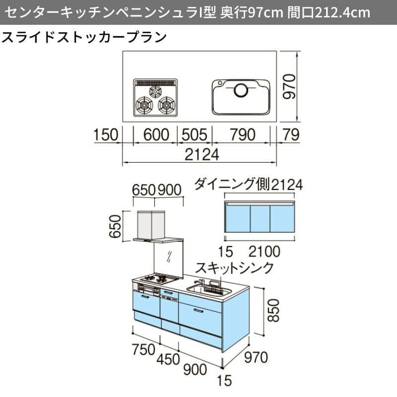 システムキッチン 流し台 本体 LIXIL 安い リフォーム おしゃれ システムキッチン リクシル シエラS センターキッチン ペニンシュラI型 スライドストッカープラン 食器洗い乾燥機付 W2124mm 間口212.4cm 奥行75/97cm グループ1 流し台 おしゃれ 可愛い システムキッチン セミオーダー リフォーム DIY