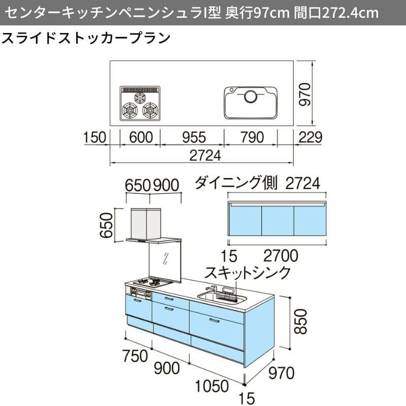 システムキッチン 流し台 本体 LIXIL 安い リフォーム おしゃれ システムキッチン リクシル シエラS センターキッチン ペニンシュラI型 スライドストッカー 食器洗い乾燥機なし W2724mm 間口272.4cm 奥行75/97cm グループ1 流し台 おしゃれ 可愛い システムキッチン セミオーダー リフォーム DIY