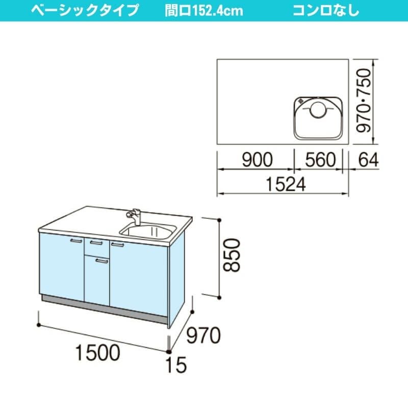 コンパクトキッチン LIXIL 事務所 給湯室 アパート 寮 公団住宅 システムキッチン セカンド リフォーム コンパクトキッチン ティオ Tio LixiL ペニンシュラI型 ベーシック W1524mm 間口152.4cm 奥行97cm コンロなし グループ2 リクシル システムキッチン 流し台