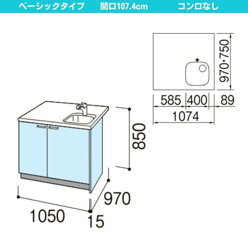 コンパクトキッチン LIXIL 事務所 給湯室 アパート 寮 公団住宅 システムキッチン セカンド リフォーム コンパクトキッチン ティオ Tio LixiL ペニンシュラI型 ベーシック W1074mm 間口107.4cm 奥行97cm コンロなし グループ1 リクシル システムキッチン 流し台