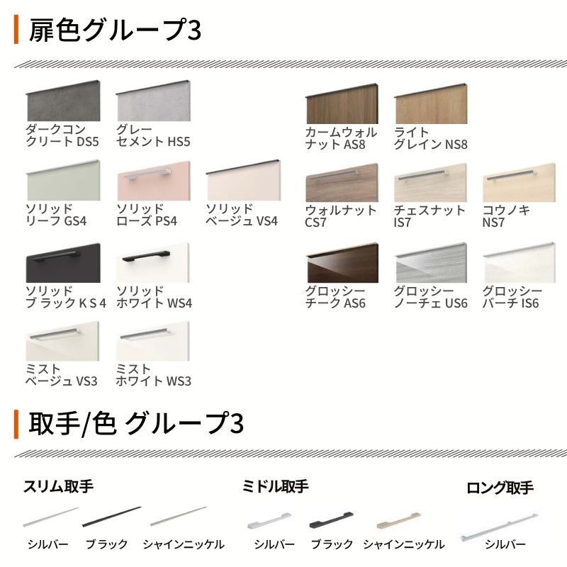 スリムな取手や豊富なカラーバリエーションにより、キッチンを理想の空間へと演出します。