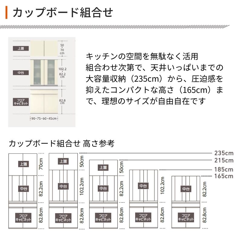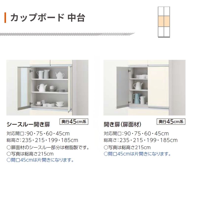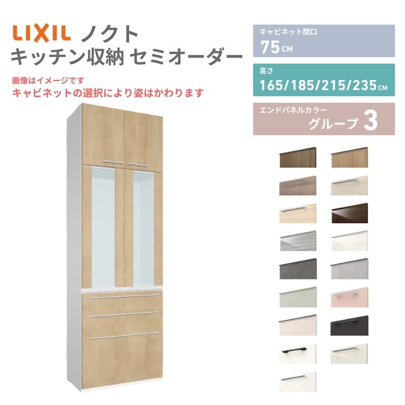 26年新モデル カップボード ノクト 食器棚 間口75cm 壁付型 トールタイプ 高さ235/215/185/165cm 奥行45cm W750mm おしゃれ リクシル グループ3
